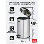 Объем урны — 12 литров. Это стандартный размер для помещений средней проходимости. Крышка плотно прилегает к изделию, препятствуя распространению запахов.